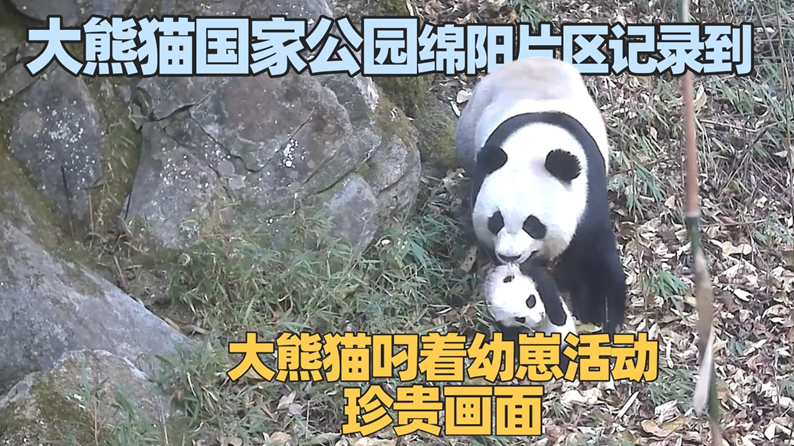 大熊猫国家公园绵阳片区记录到大熊猫叼着幼崽活动珍贵画面
