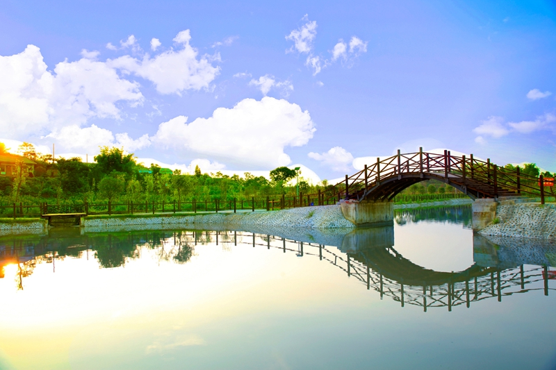 蓝天白云伴着绿树碧水