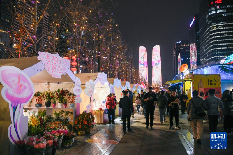 春节将至,“二月花市年宵花会”在四川省成都市举行,活动通过打造花卉主题市集,为市民提供赏花购花场所,喜气洋洋一同迎接新春。