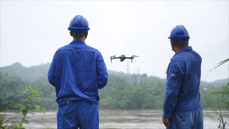 工作人员利用无人机开展输电线路巡检。(国网广安供电公司供图)