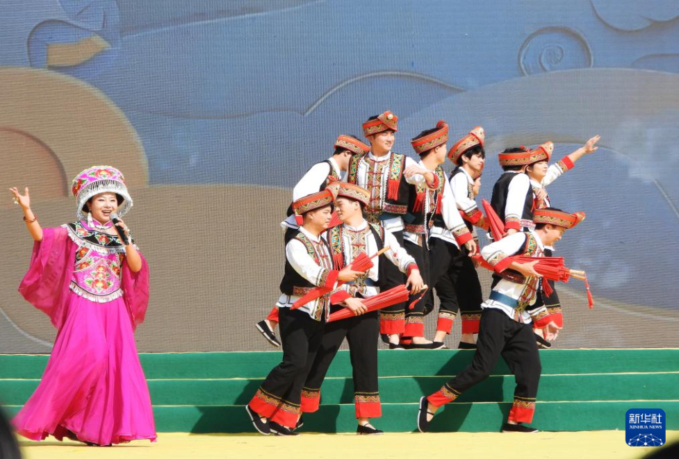10月28日,少数民族演员在展演现场表演节目。新华社发(邓良奎摄)