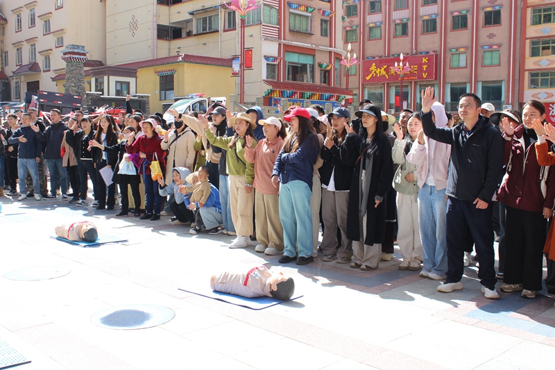 活动现场,除了紧张有序的急救培训,来自阿坝州红十字会的张友花采用“理论讲解+实操演练”的模式,为群众演示心肺复苏的操作流程,对胸外按压、人工呼吸等环节进行了详细教学。现场还举办了爱心捐款活动,发放健康宣传手册3000余份。