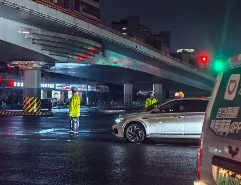 晚8点左右,武侯区人民南路雨势减弱,目前雨已停,记者在人民南路三段与一环路南二段交叉路口、人民南路三段与林荫街交叉路口看到,在交警的指挥中,交通顺畅有序。