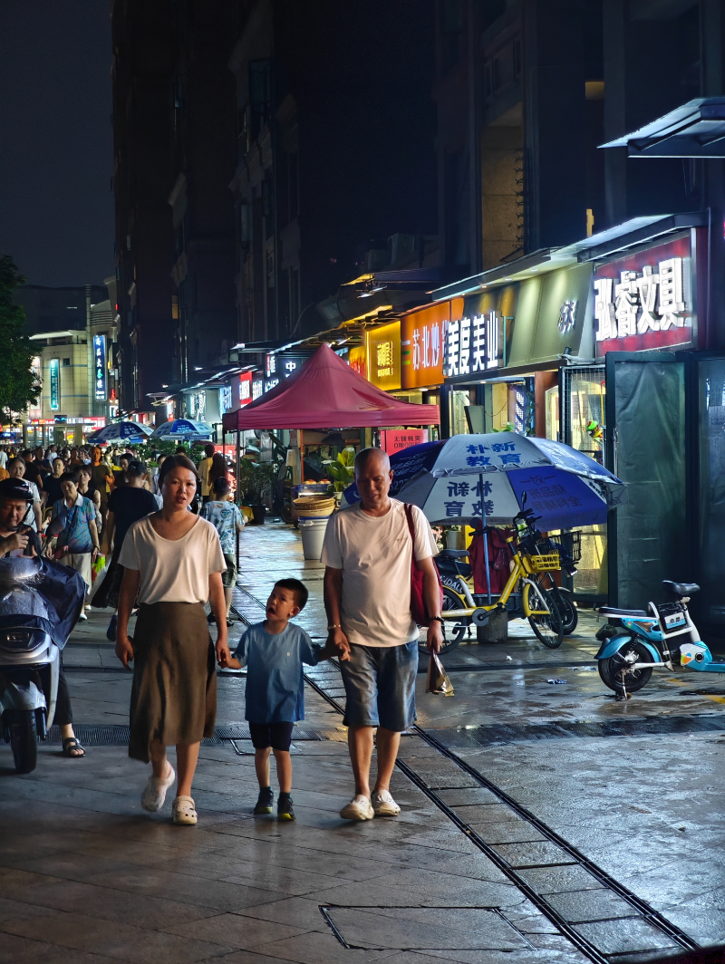 晚上8点半左右,武侯区武侯新城附近雨已停,记者在武侯大道铁佛段簇桥地铁站附近,看到路口交通井然有序,周边市民饭后悠然散步,沿途商家正常经营。