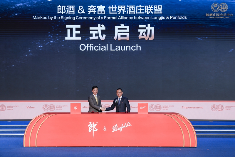 在本届会员节上,汪博炜与奔富中国区总经理吴明峰签约启动“郎酒&奔富世界酒庄联盟”,并重磅发布红运郎×奔富BIN707(联名款)礼盒。郎酒庄园作为独特的中国白酒酒庄,与奔富的玛格尔庄园携手,将为消费者带来更多不一样的体验,是中外酒庄的双向奔赴。