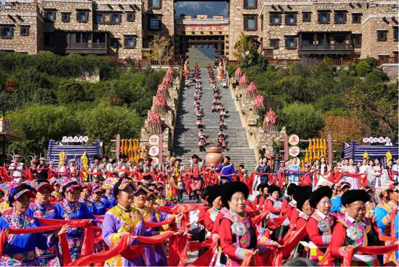 中国古羌城位于四川省阿坝藏族羌族自治州茂县,是一座以羌族文化为核心,集非遗保护、活态展示、旅游体验于一体的综合性文化旅游区、国家4A级旅游景区。自2013年开放以来,中国古羌城以“非遗+旅游”为核心,通过常态化开展非遗展演、沉浸式文化体验活动等,成为羌族文化活态传承的“博物馆”和民族文旅融合的示范样板。