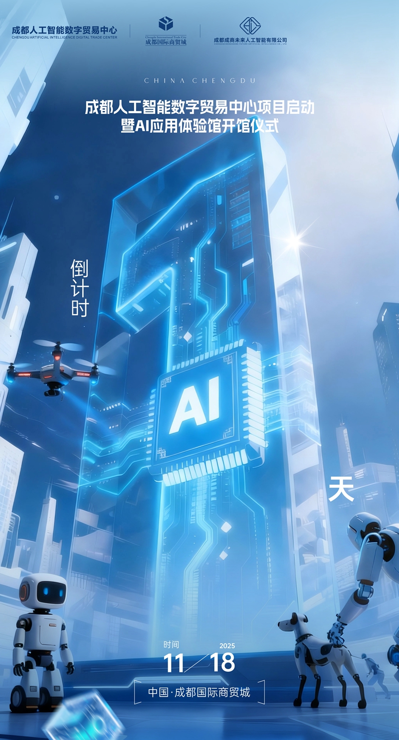 11月18日,成都人工智能数字贸易中心项目将在成都国际商贸城启动运营,成都人工智能数字贸易中心AI应用体验馆也将开馆,展示多个领域的AI+的应用场景,赶紧约上伙伴一起来打卡吧。