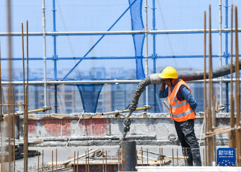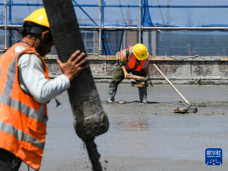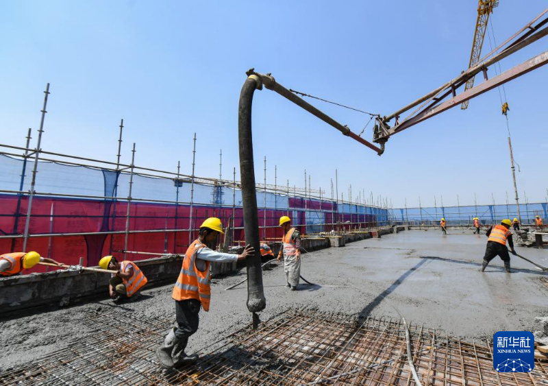 4月30日,中建三局的工人在成都芯谷产业功能区配套项目浇筑混凝土。新华社记者 王曦 摄
