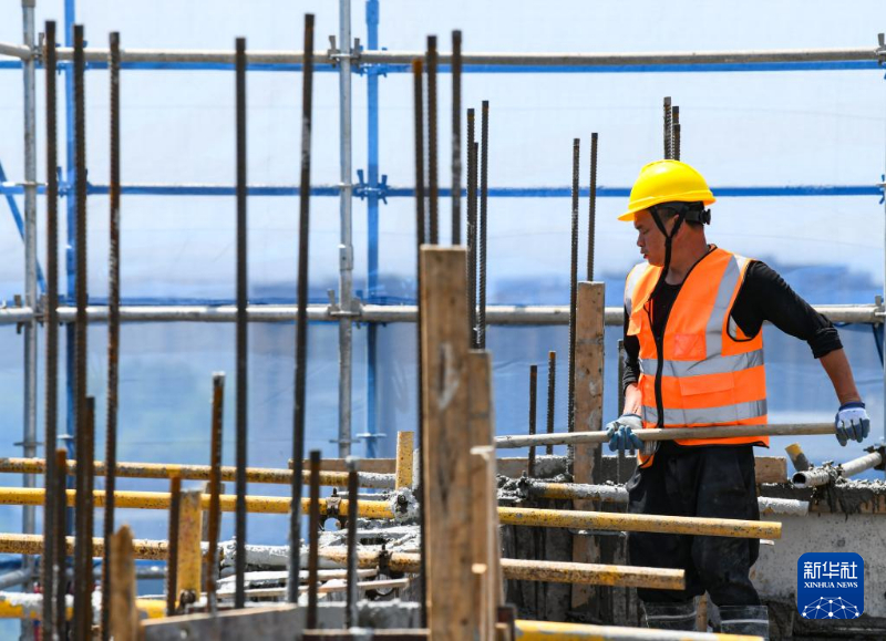 4月30日,中建三局的工人在成都芯谷产业功能区配套项目施工作业。新华社记者 王曦 摄