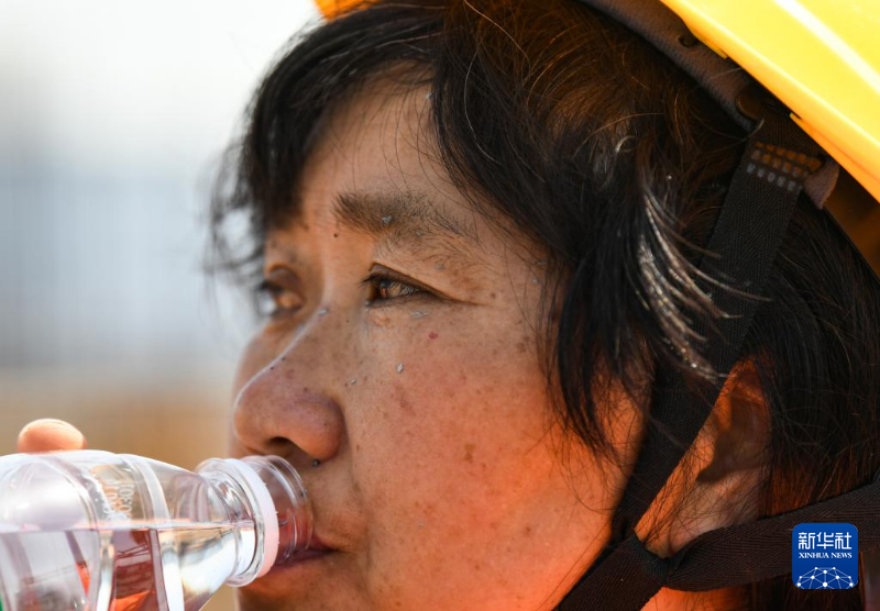 4月30日,中建三局的工人在成都芯谷产业功能区配套项目施工间隙喝水。新华社记者 王曦 摄