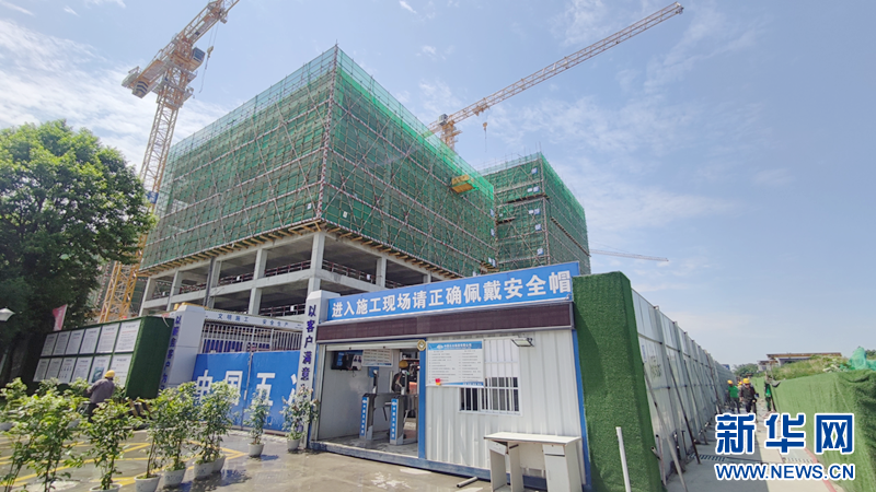 在施工现场,梁晓龙指着现场用绿色密目网“围”住的楼栋介绍:“现在主要进行幕墙工程、二次结构及机电安装等施工。”李勇介绍说:“现在是抢工期的关键节点,1000多名工人正‘火力’全开,确保项目9月底如期交付。”李勇表示,为保证主体结构施工节点如期完成,该项目部制定“7天一层楼”目标,早在开工前,团队就将楼层施工中测量放线、支模架搭设、模板铺设、钢筋绑扎等工序计划细化到天。