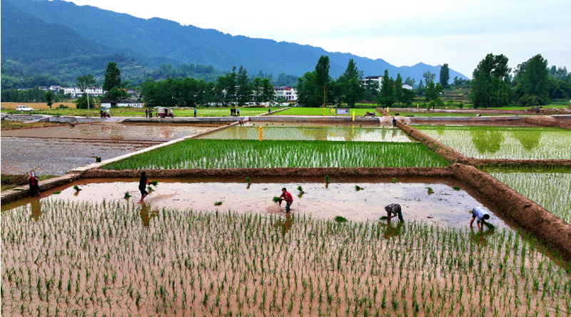 如今的宣汉县到处可见这样生动的抢收、抢种、抢管农业生产画面:小春粮油作物开镰收割,一派丰收的景象;大春水稻陆续栽插,插秧机田间穿梭;玉米幼苗翻绿浪,随处可见喷灌、施肥、锄草等劳动场景……沃野千里,绿浪翻滚,田野欢歌。