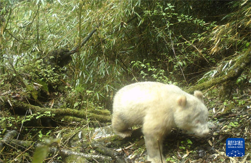2019年拍摄到的首张白色大熊猫图片。新华社发(四川卧龙国家级自然保护区管理局供图)