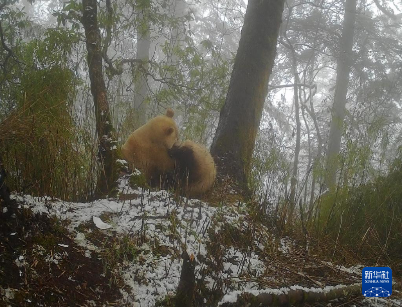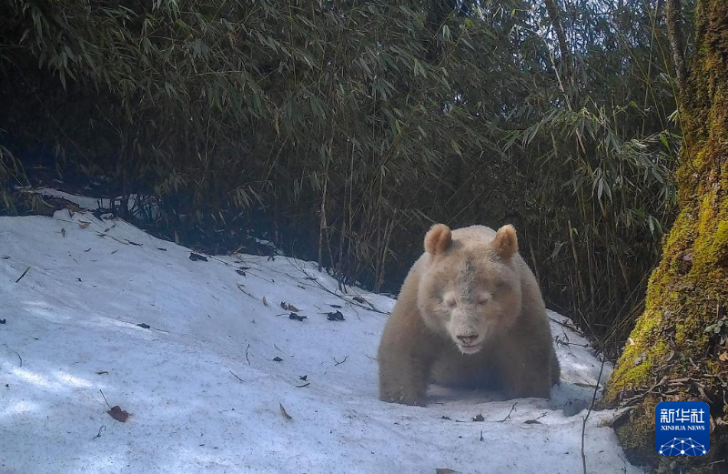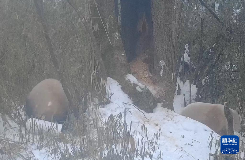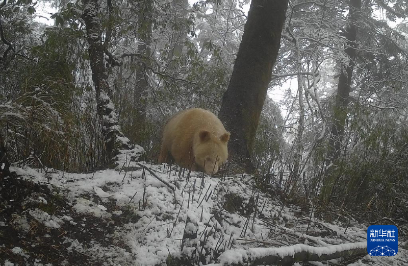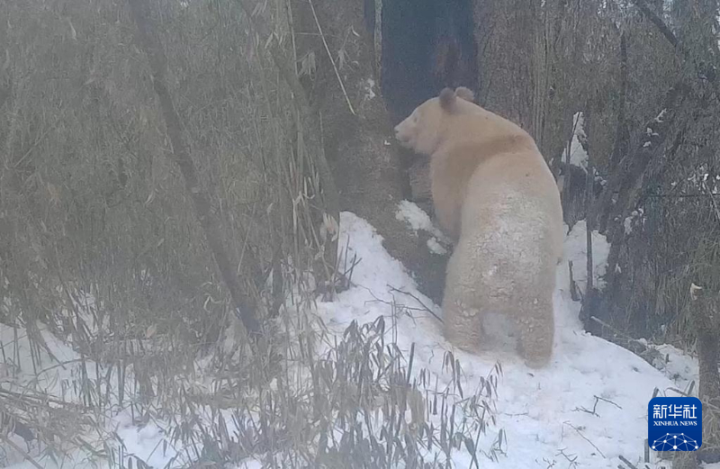 红外相机拍摄到的白色大熊猫活动画面。新华社发(四川卧龙国家级自然保护区管理局供图)