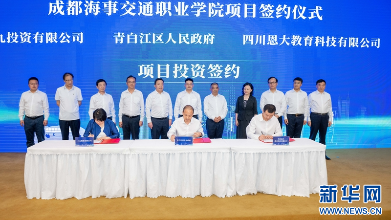 6月13日,成都海事交通职业学院项目签约仪式在青白江区举行。青白江区与四川恩大教育科技有限公司、三九投资有限公司合作,将携手建设成都海事交通职业学院。