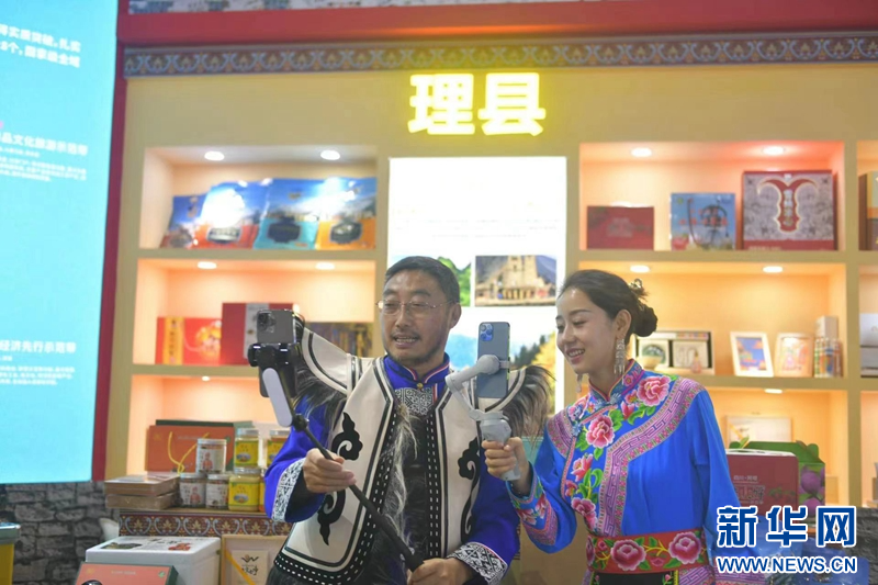 此次西博会上,除了线下布展以外,理县还请来“本土网红”线上直播推广理县特色产品。
