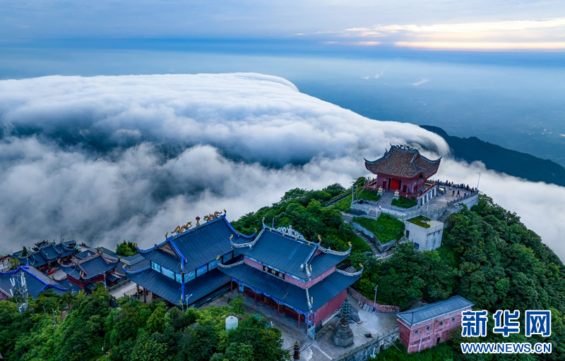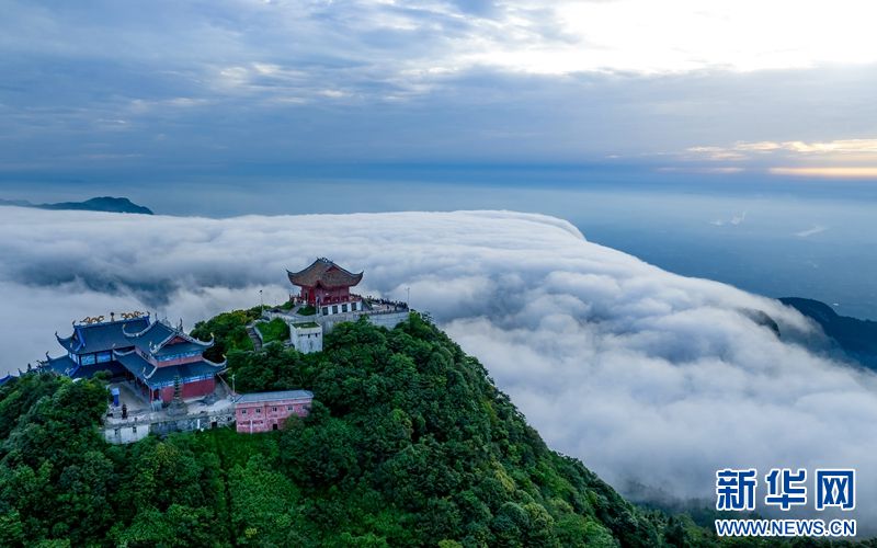 2023年7月4日傍晚,雨后放晴的四川省广安市华蓥山宝鼎,被壮观的云海簇拥。