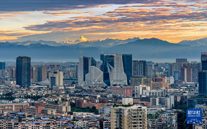 在成都市武侯区遥望雪山。新华社发(杜宁 摄)