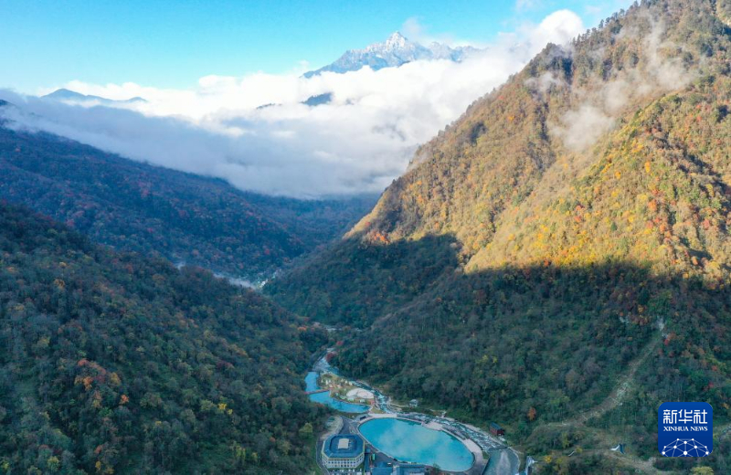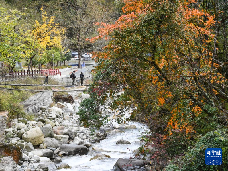 深秋时节,位于四川省天全县的二郎山喇叭河风景区秋色如画,吸引众多游客前来观光旅游。
