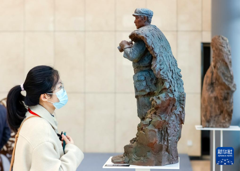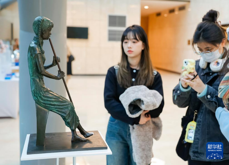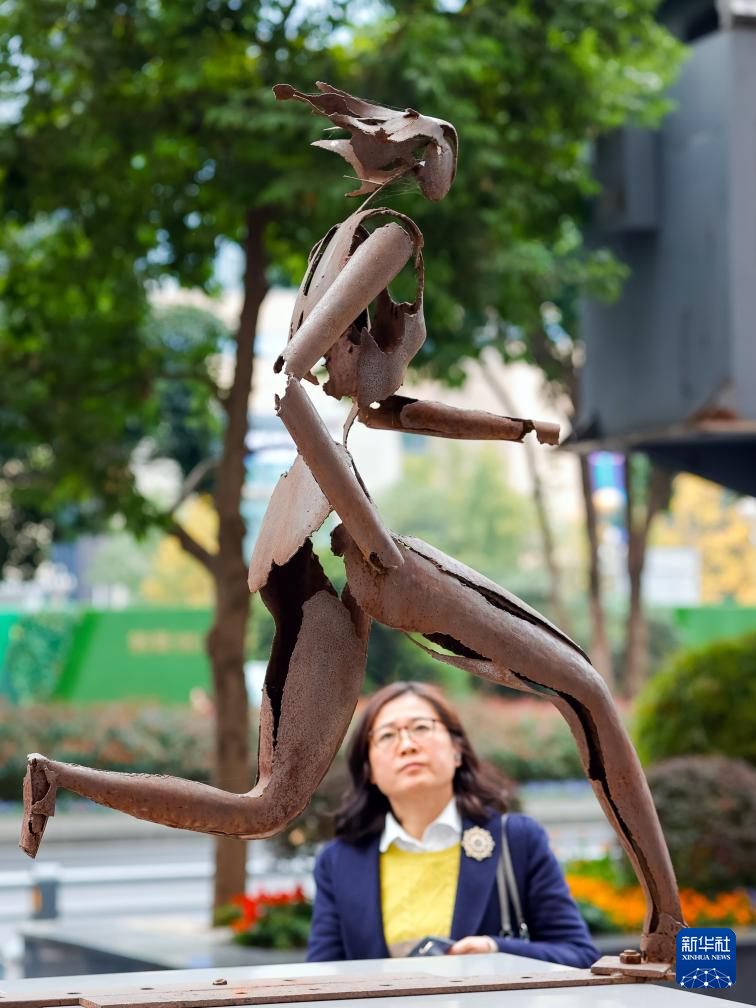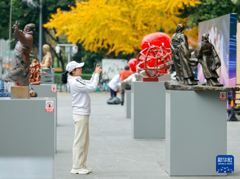 11月30日,人们在欣赏首届天府雕塑展上展出的作品。新华社记者 沈伯韩 摄