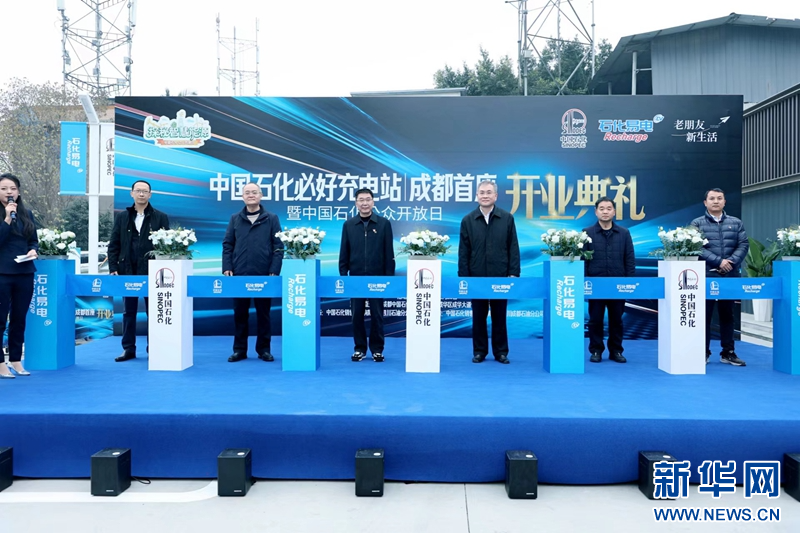 四川成都石油必好充换电站开业剪彩。新华网发(刁玉婷 摄)