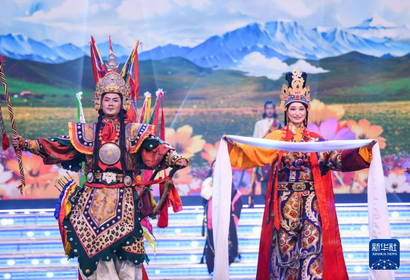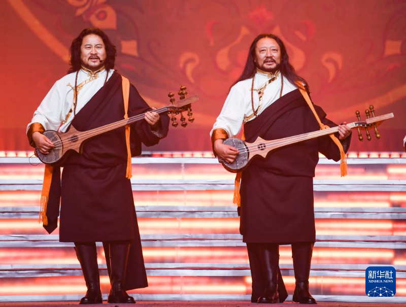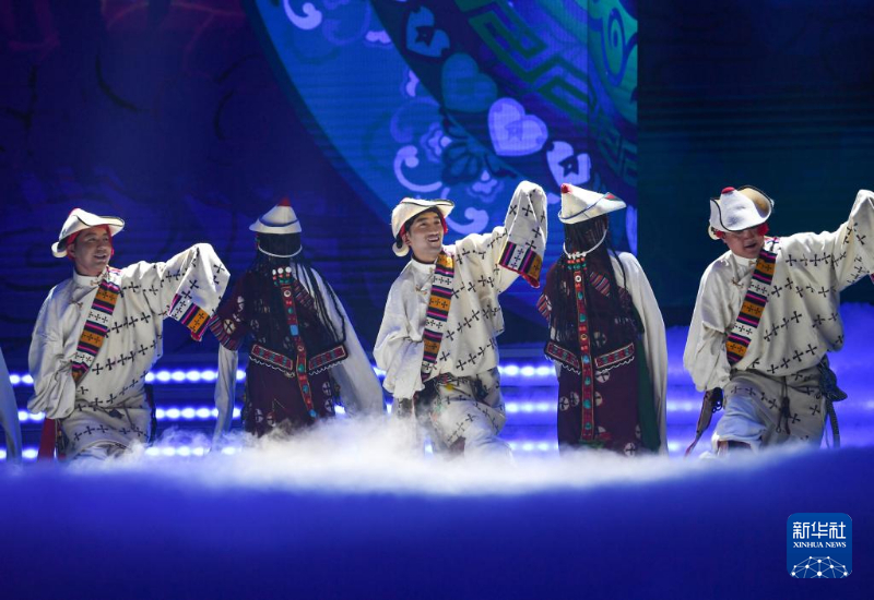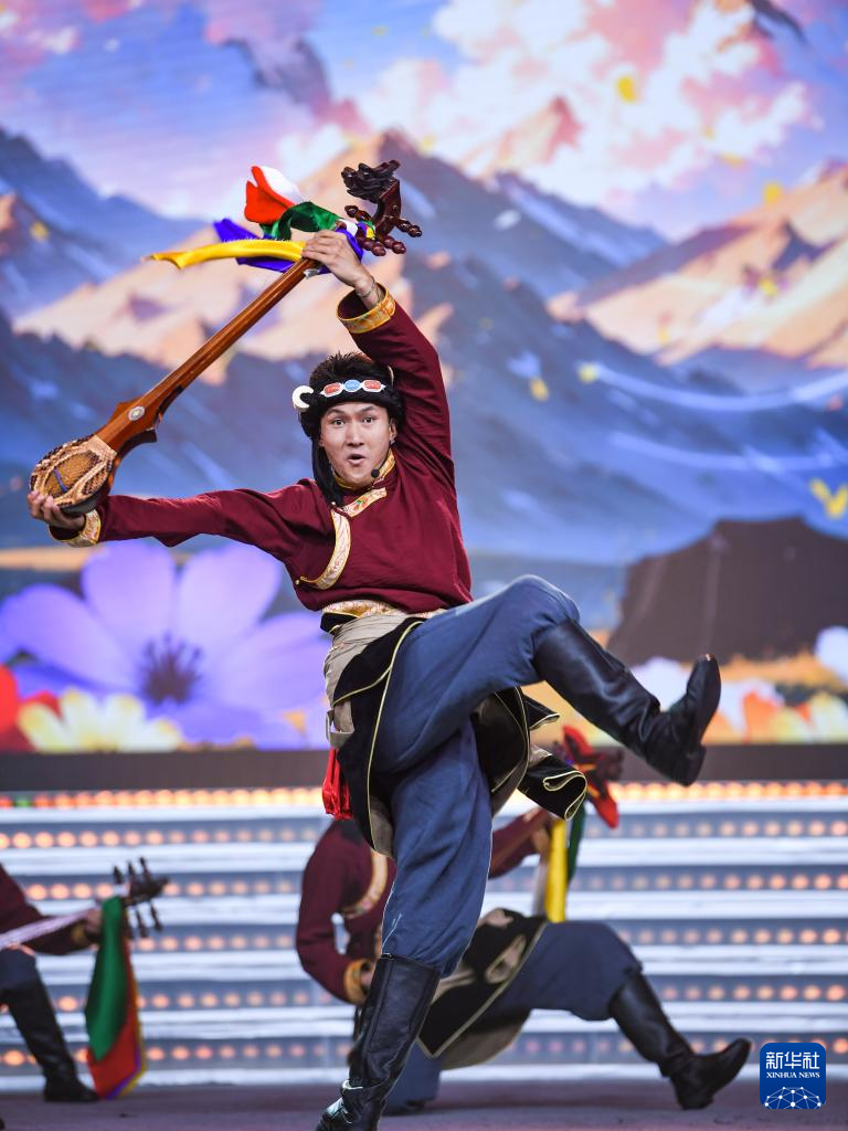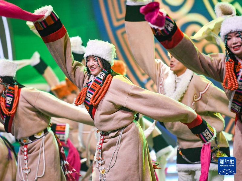 1月13日,演员在藏历木龙新年联欢会录制现场表演。新华社记者 王曦 摄