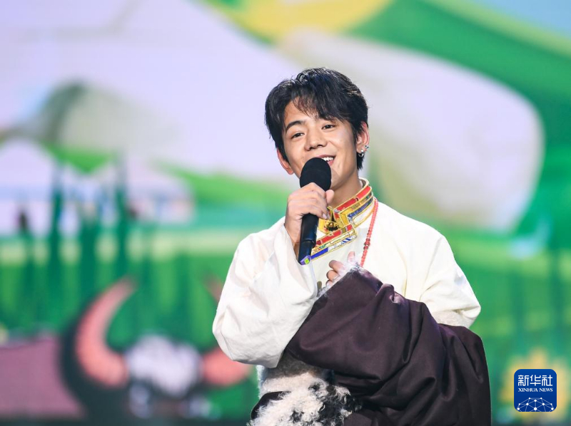 1月13日,演员丁真珍珠在藏历木龙新年联欢会录制现场表演。新华社记者 王曦 摄