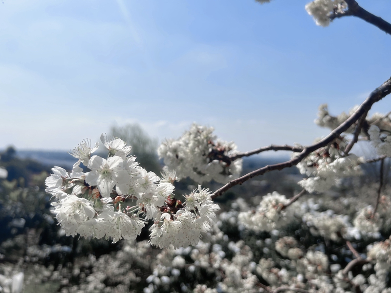 近日,在四川天府新区太平街道小堰村,2000余亩樱桃花怒放枝头,形成一道靓丽风景线。