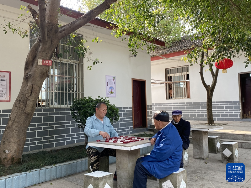 翠屏区金秋湖镇邱场敬老院内,老人们正在下棋。新华社记者周以航 摄