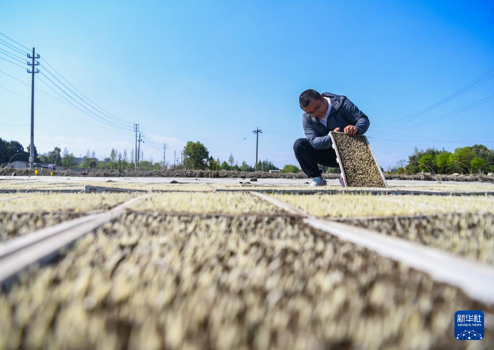 3月28日,在四川省成都市崇州市三江街道,舒星宇(左一)在合作社清点种植大户送来的水稻种子。新华社记者 王曦 摄