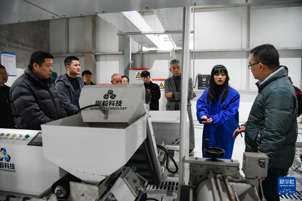 3月8日,在四川省成都市崇州市隆兴镇,王伶俐(右二)在和其他种粮大户交流智能育秧设备的使用情况。新华社记者 王曦 摄