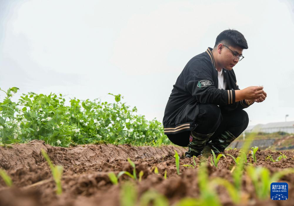 4月2日,在四川省达州市通川区北山镇,雷超在田间查看玉米幼苗的长势情况。“90后”的雷超是四川省达州市通川区穗香种植专业合作社的农业职业经理人。雷超看到了农机科技设备和惠农政策在农业上的应用和发展,2021年,他流转了川东丘陵地区近1000亩的山区农田,发展半机械化的粮食作物种植。