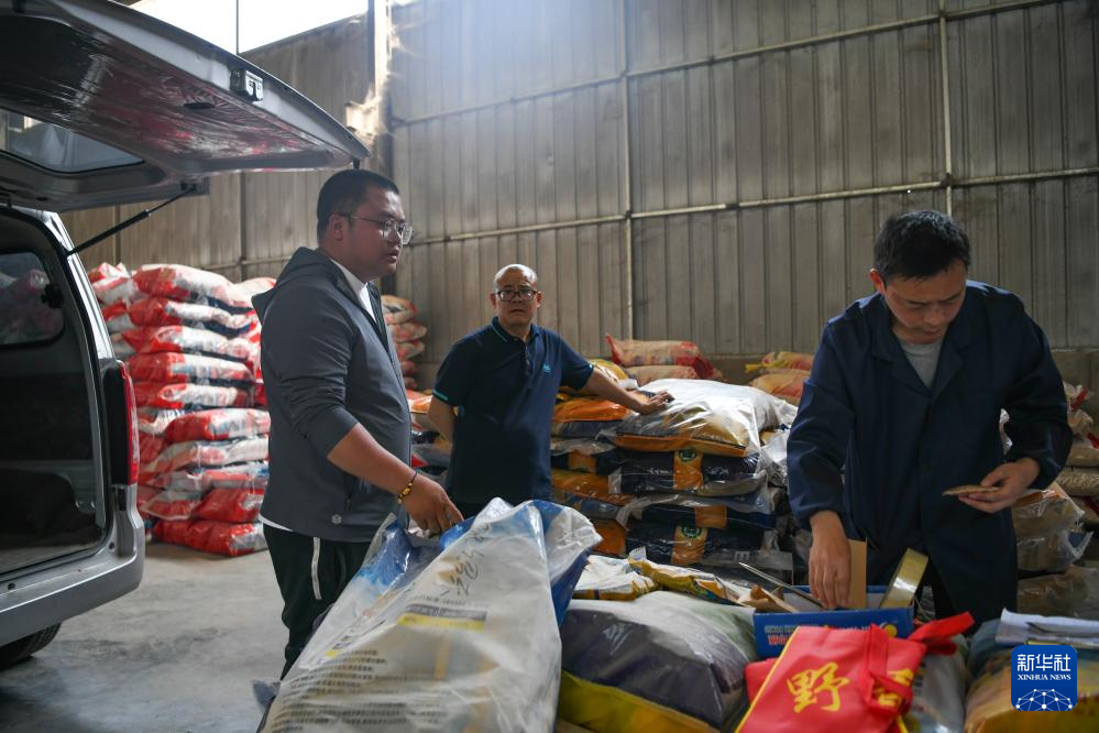 3月28日,在四川省成都市崇州市三江街道,舒星宇(左一)在合作社清点种植大户送来的水稻种子。