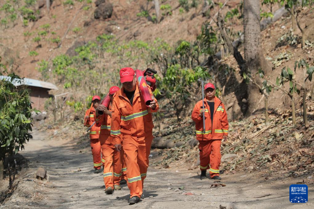 4月10日,四川省攀枝花市普威国有林保护局得石国有林场的管护员走在进山巡护的路上。新华社记者 郭昱 摄