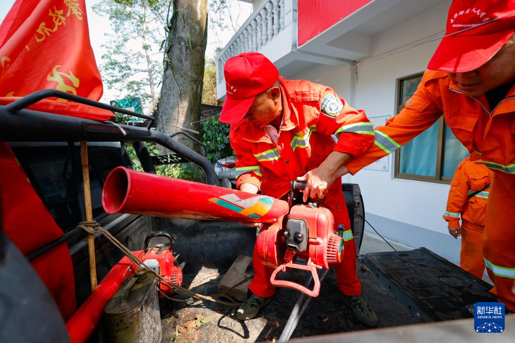 4月10日,在四川省攀枝花市普威国有林保护局得石国有林场办公区,管护员往车上装设备,准备出发去山里巡护。新华社记者 沈伯韩 摄