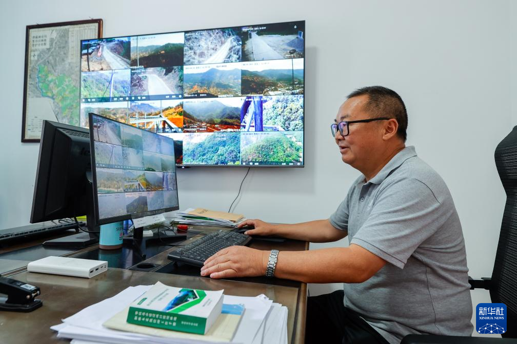 4月10日,在四川省攀枝花市普威国有林保护局得石国有林场办公室,工作人员王义培利用智慧林业视频监控综合管理平台,通过远程摄像头查看林场情况。新华社记者 沈伯韩 摄