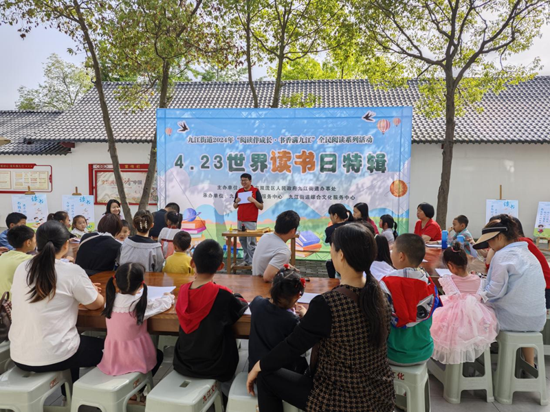 4月22日,成都双流区九江街道以“阅读伴成长·书香满九江”为主题开展了迎接4·23世界读书日的主题活动,带领辖区亲子家庭共同体验阅读的魅力。