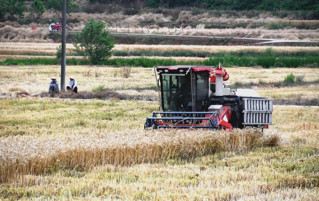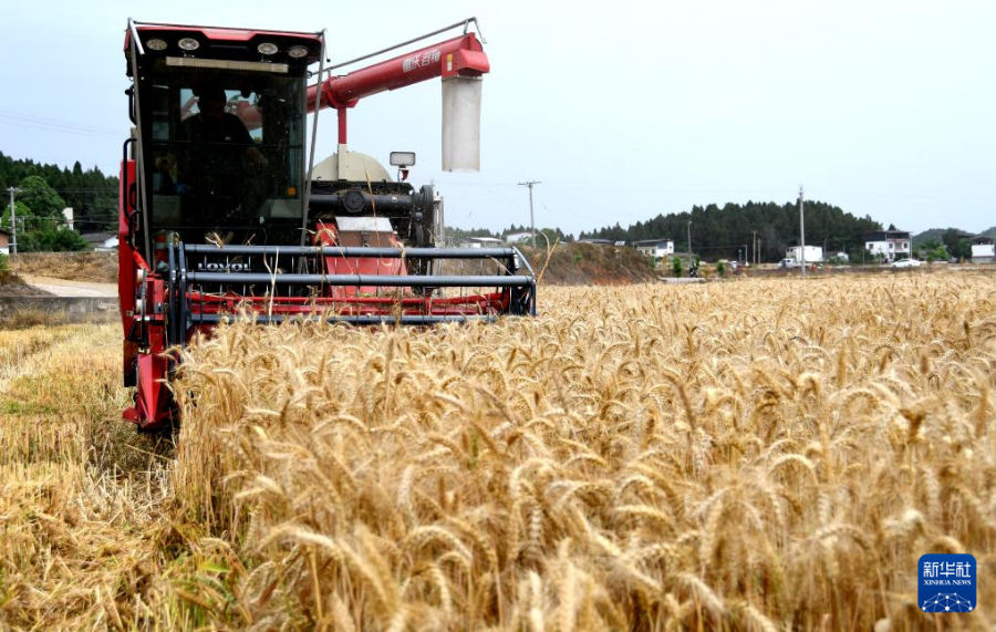 四川省德阳市中江县是四川的传统粮食生产大县。在该县永太镇石狮村,一台台收割机在金黄的麦浪中来回穿梭,抢抓农时收麦子。