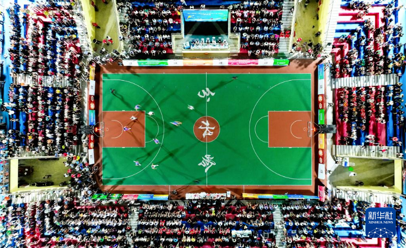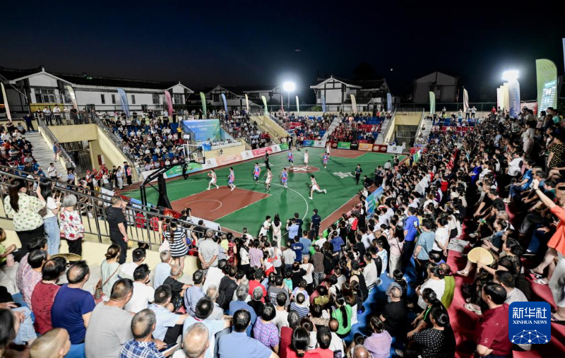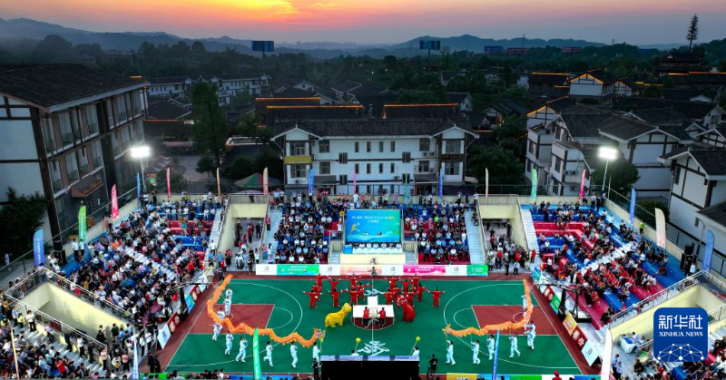 5月22日,在泸州市江阳区分水岭镇,四川省和美乡村篮球大赛川南赛区比赛开幕(无人机照片)。新华社发(刘学懿摄)