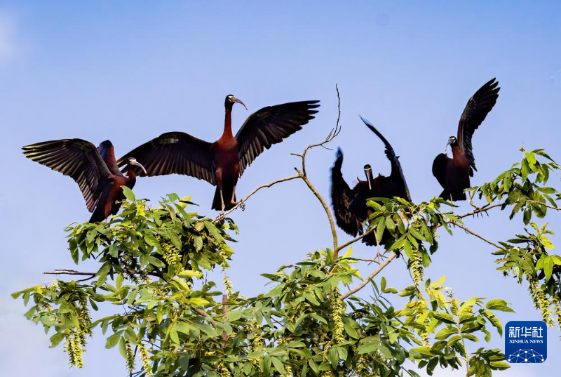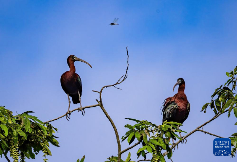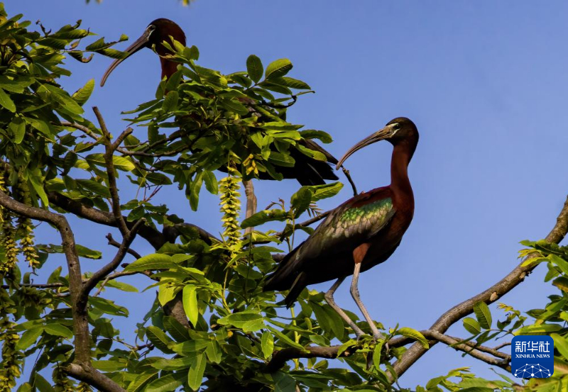 在成都邛崃市高埂镇,彩鹮在树上栖息(5月23日摄)。新华社发(洪杨摄)