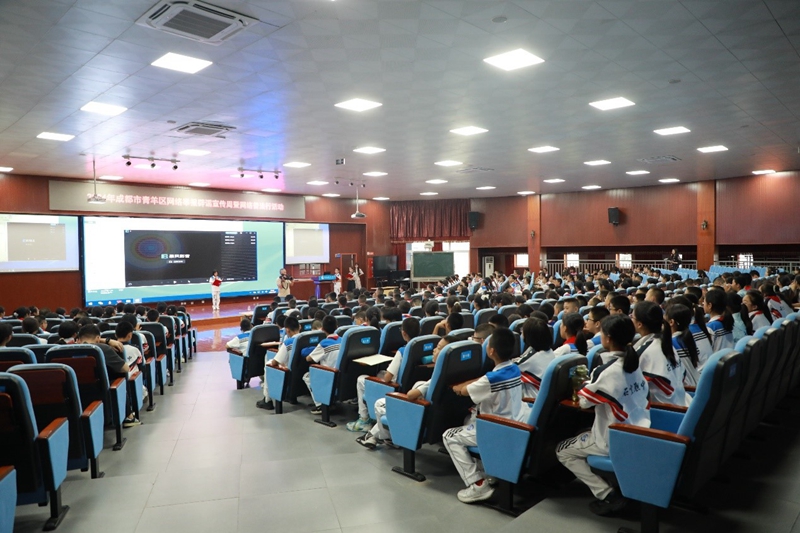 “e起护苗”进校园活动走进成都市石室联合成飞学校。(青羊区委宣传部供图)
