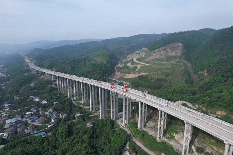 建设中的牛尾沟特大桥 。(乐山市委宣传部供图)