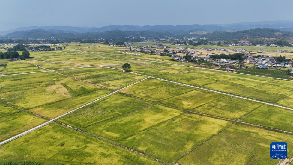 8月26日拍摄的洪雅县“天府粮仓”止戈安宁万亩核心示范区(无人机照片)。新华社记者 胥冰洁 摄