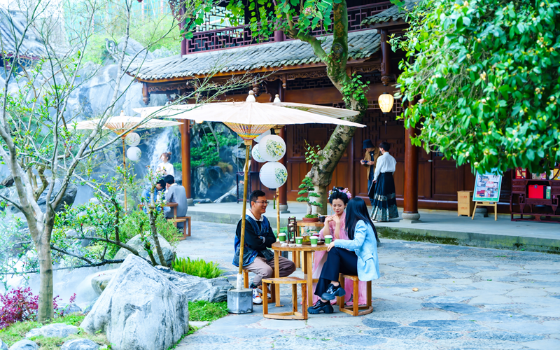 温江分会场之所以这么“热”,离不开创新呈现的多元化消费场景和精彩纷呈的节会活动。办会期间,“一园”设置1个花木博览馆、3个园艺馆、1条特色花街。“一轴”则以2.2公里田园生态绿道串联起火锅、咖啡、茶饮等消费新场景。“一馆”则聚集了全国各大盆景派别的精品盆景。世园会期间举行的成都世园会盆景专项竞赛展,共计展出244件精品盆景,同时还打造了古色古香、时尚典雅的消费新场景——知音馆,让市民游客感受盆景艺术的技艺技法和盎然诗意的同时,乐享多元消费场景。