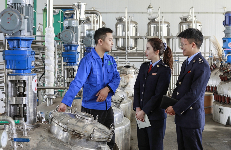 税务干部在岳池县川渝合作生物医药城中走访问需。(国家税务总局四川省税务局供图)