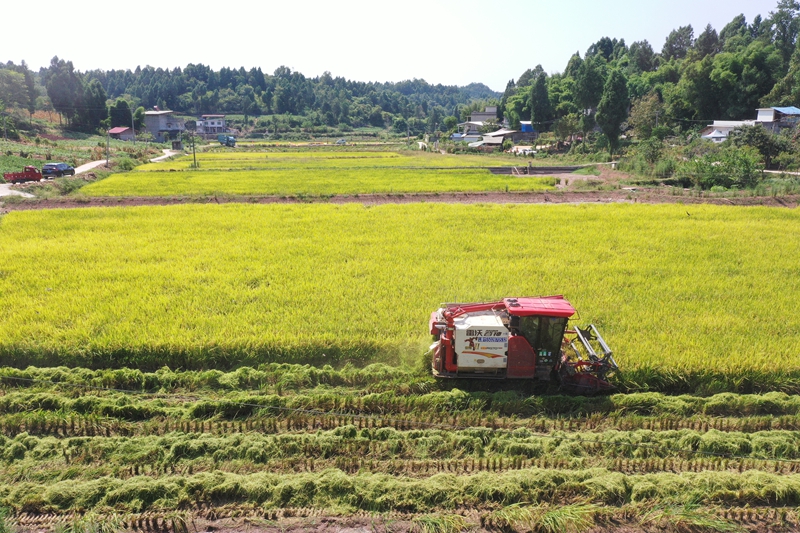 机收水稻。(姚阳摄)