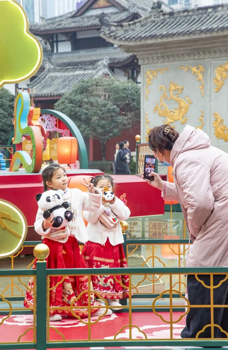 和成都IFS一街之隔的成都太古里呈现出另一番热闹喜庆的景象。“开新戏 Tales of the Spring”装置展现场,八角戏台上,扶桑花娇艳欲滴,扶桑树在灯光的映照下熠熠生辉。“除夕遇到这个把传统文化和现代艺术结合的活动,很惊喜!皮影和《山海经》元素让孩子们了解传统文化,特别有趣,年味儿很浓!”市民李女士点赞道。