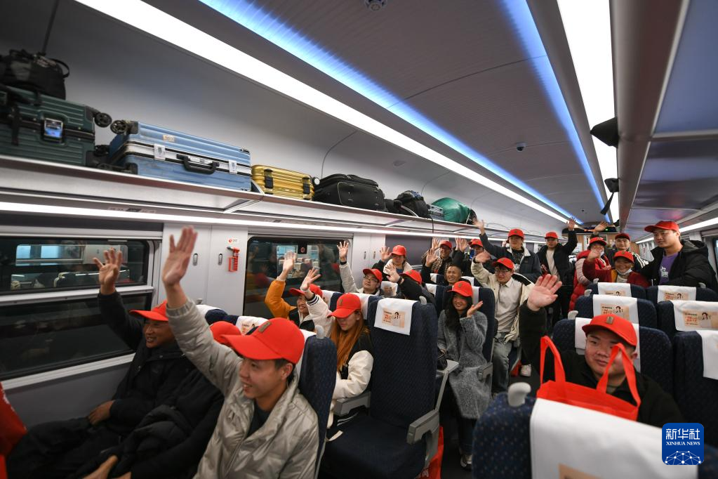 2月11日,来自四川省凉山彝族自治州5个区县的数十名务工人员搭乘C50次列车,从西昌西站启程前往成都,开启蛇年务工之旅。据了解,当地政府和铁路部门开辟“绿色通道”,并发放“爱心礼包”,保障外出务工人员顺利返岗。