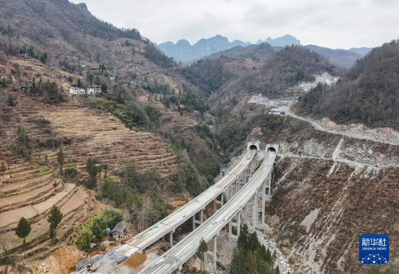 这是2月23日拍摄的米仓大道岳家梁隧道口(无人机照片)。新华社记者 王曦 摄