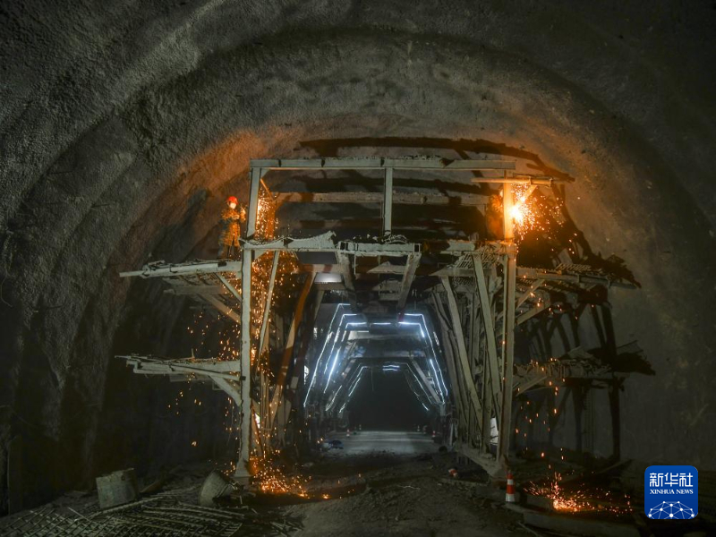 2月23日,中铁十一局的工人在米仓大道岳家梁隧道内拆除开挖台车。新华社记者 王曦 摄